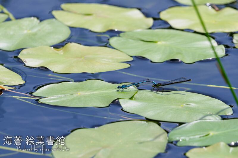冷たい秋の水面に浮かぶ蓮の葉を眺めていたらトンボたちのいのちのリレーに出会いました